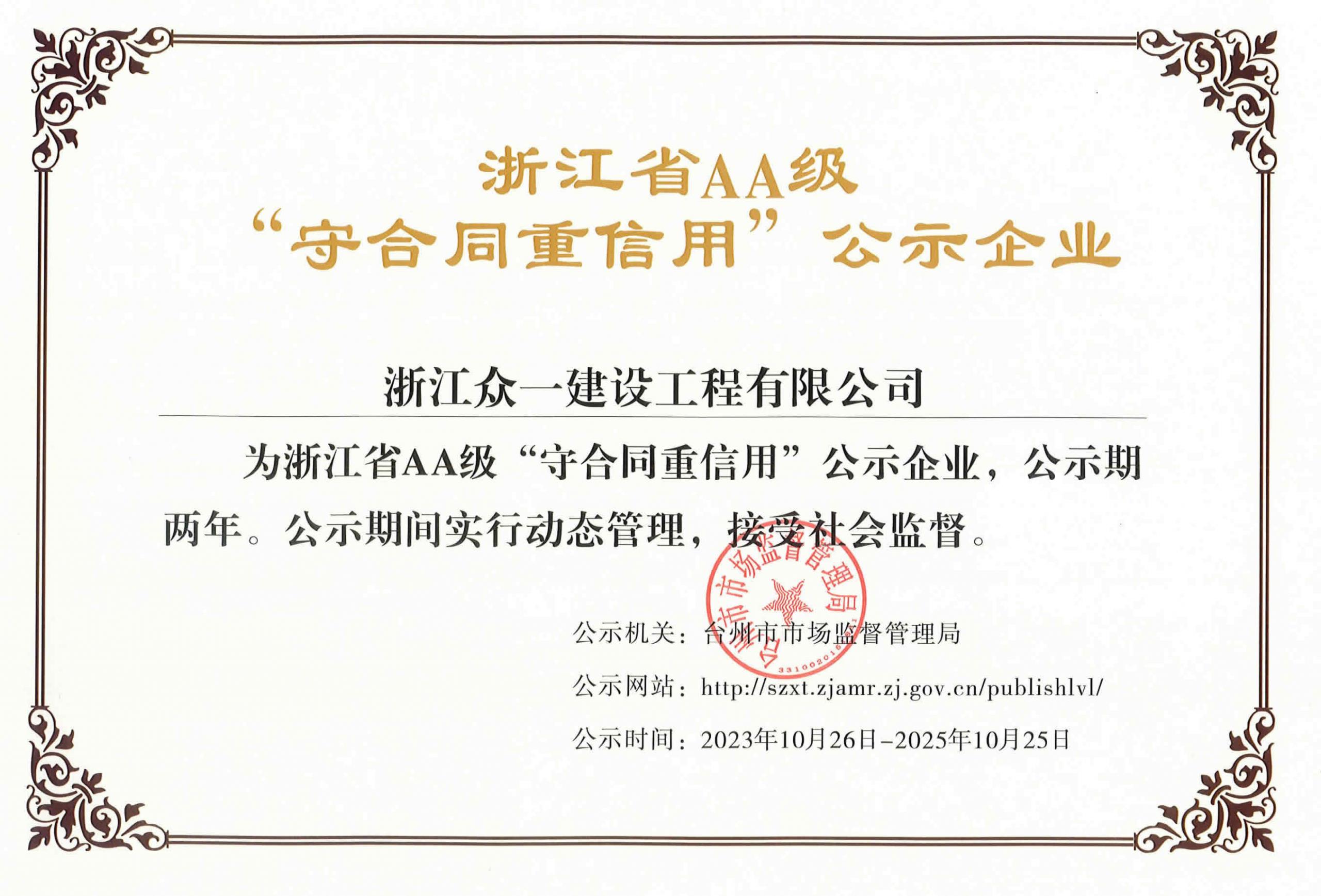 浙江眾一建設(shè)工程有限公司成立于2006年4月,企業(yè)性質(zhì)為有限責(zé)任公司,注冊(cè)資本金15800萬元,主要資質(zhì)有公路工程施工總承包壹級(jí),市政公用工程施工總承包貳級(jí),水利水電工程施工總承包貳級(jí),鋼結(jié)構(gòu)工程專業(yè)承包貳級(jí),公路路面工程專業(yè)承包貳級(jí),橋梁工程專業(yè)承包貳級(jí),施工勞務(wù)不分等級(jí)。